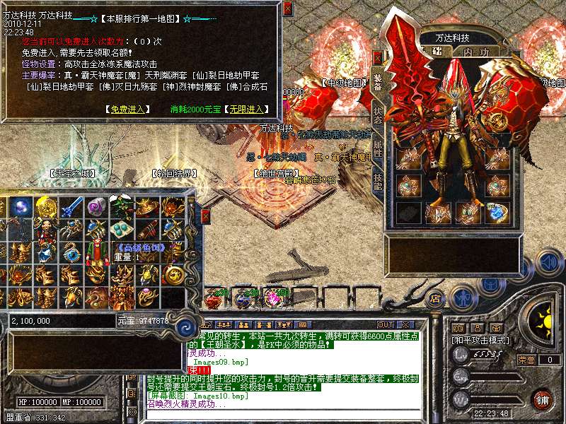 15.其他2套高级地图可以每天领取免费名额,也可以元宝进入,为本服务器高级地图,装备掉落的程度很高,是高级玩家打装备必去的地方!