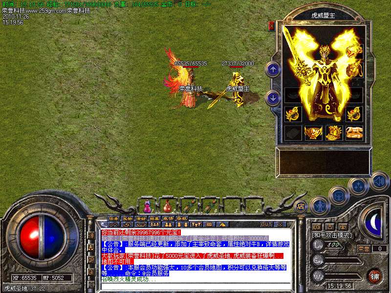 4、60级后可以去激 情打宝,每秒4W经验,边打宝边泡级,可爆修真、无敌、必杀,BOSS出大量元宝。