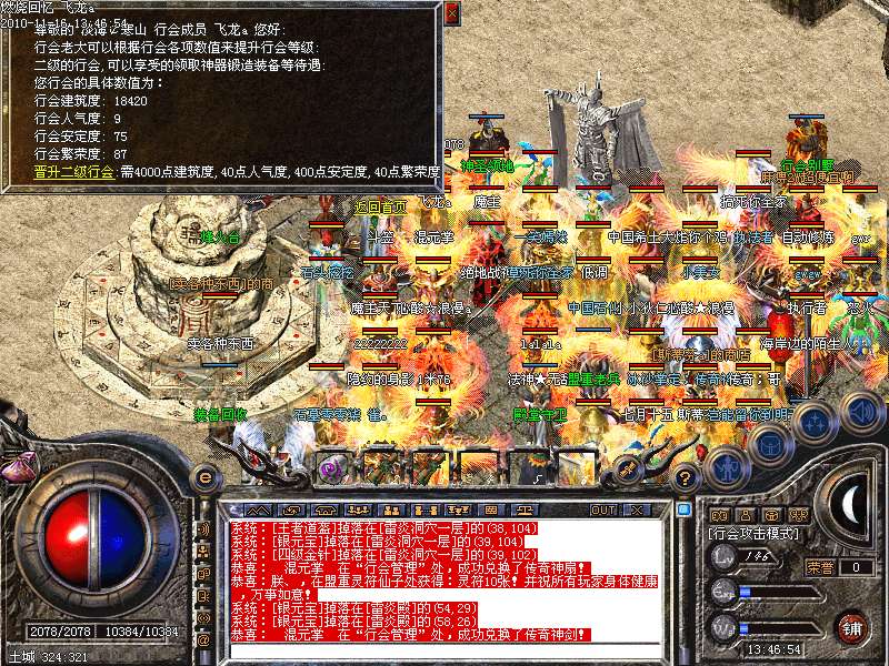 3加入行会管理功能,行会功能非常强大。凝聚行会成员之间的团结。特别是行会对攻战争地图。是行会与行会之间PK的高级战场。