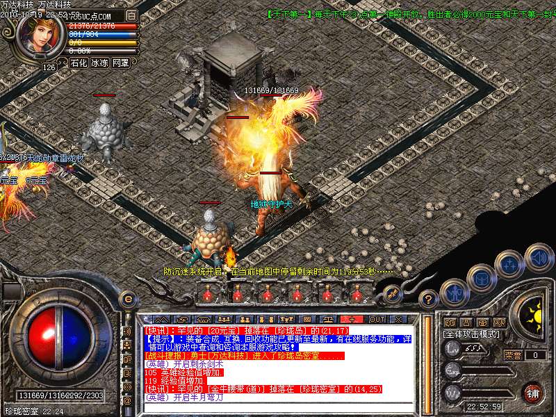 【特色功能】:【上古龙神】行会PK室(23.24)上古龙神90分钟会出现。爆装备元宝。。