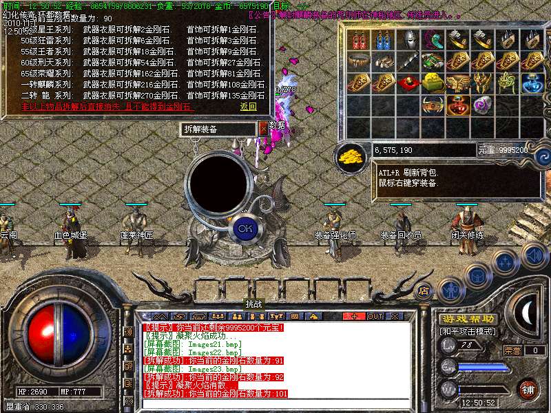 [245]45级以上的装备都可以拿到蓬莱神匠处拆解成金刚石.金刚石可以打造装备.也可以换成元宝.