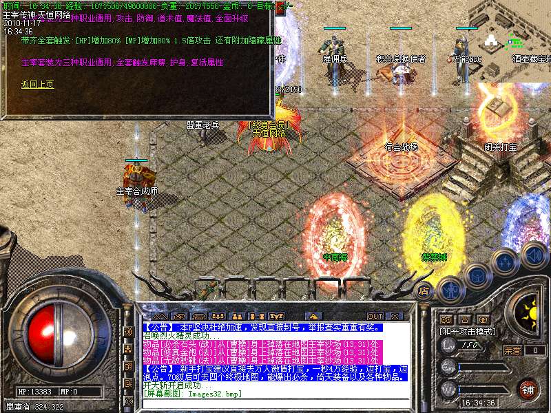 60级后可以去激情打宝,每秒4W经验,边打宝边泡级,可爆修真、无敌、必杀,BOSS出大量元宝。