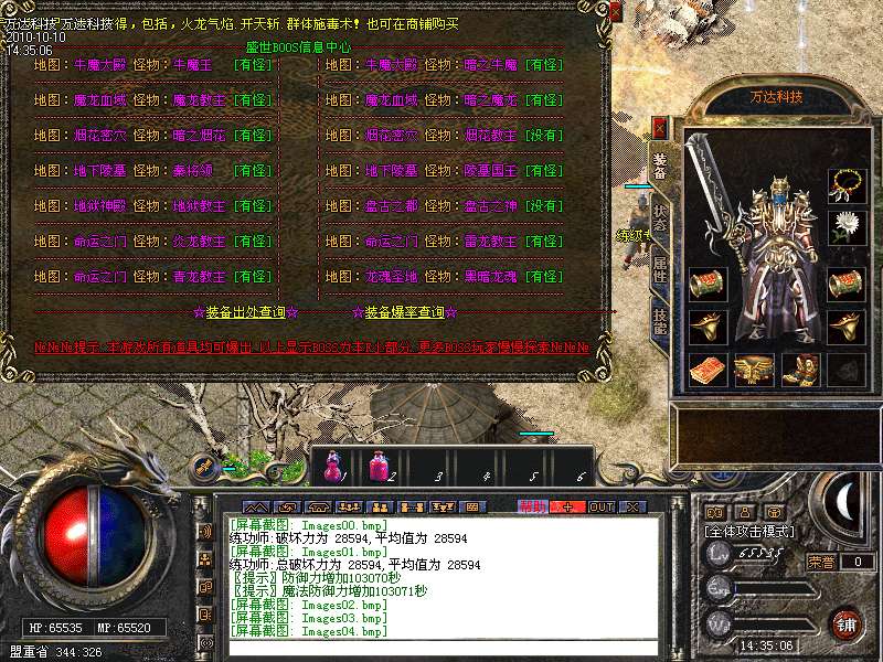 <253,0>游戏爆率已大幅度提高,小BOSS都将会爆出战神装备。包括开天,强化!大BOSS更有几率爆出致命石,伤害石。元素可在封魔皇宫自行添加!