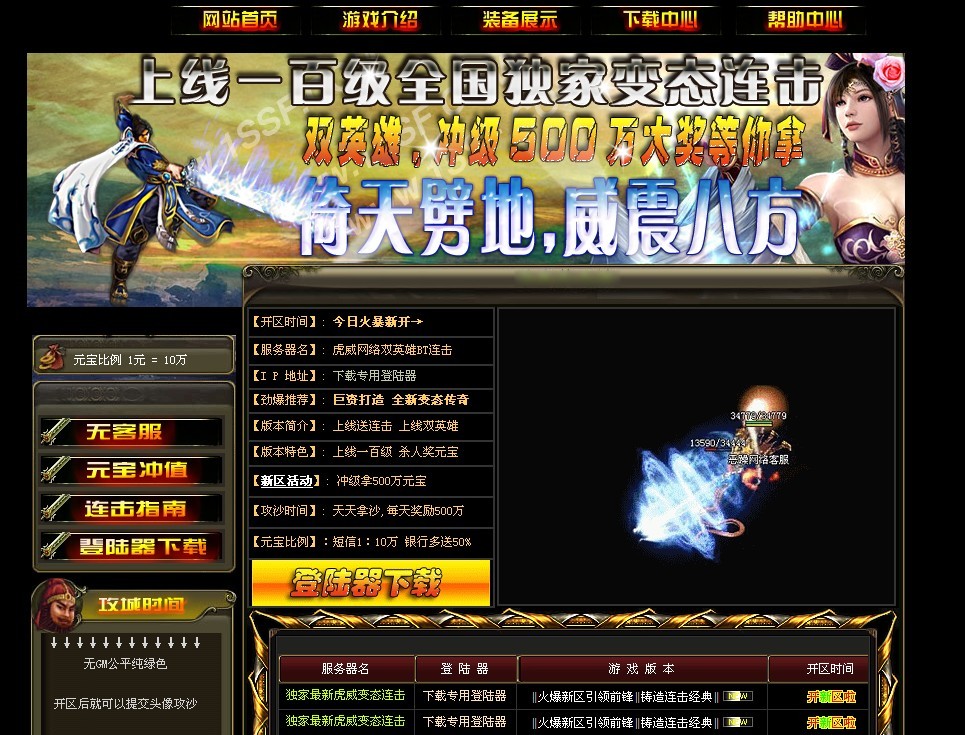 程序说明:本站全套静态页面,方便各位下载修改,内附有修改方法,轻松更便捷。程序类型 :全站HTM源静态代码适用于防盛大,变态,中变,合击,等传奇开区使用...专业的美工!新模板给您带来新